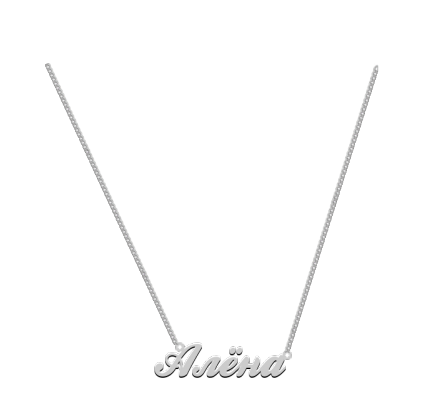 Кулон - подвеска с именем Алёна из серебра 925 пробы. Серебряная подвеска Алёна может быть так же, по желанию Заказчика, изготовлена с родием (белое золото), либо с чернением. Дизайн шрифта (букв) серебряного кулона с именем Алёна так же можно изменить исходя из личных предпочтений.