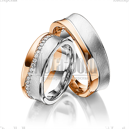 Обручальные кольца из белого и красного золота с волнистой дорожкой бриллиантов в женском кольце