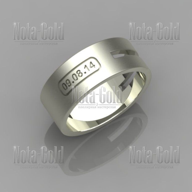 Кольцо из матового белого золота с прорезью и гравировкой даты (вес: 8 гр.)